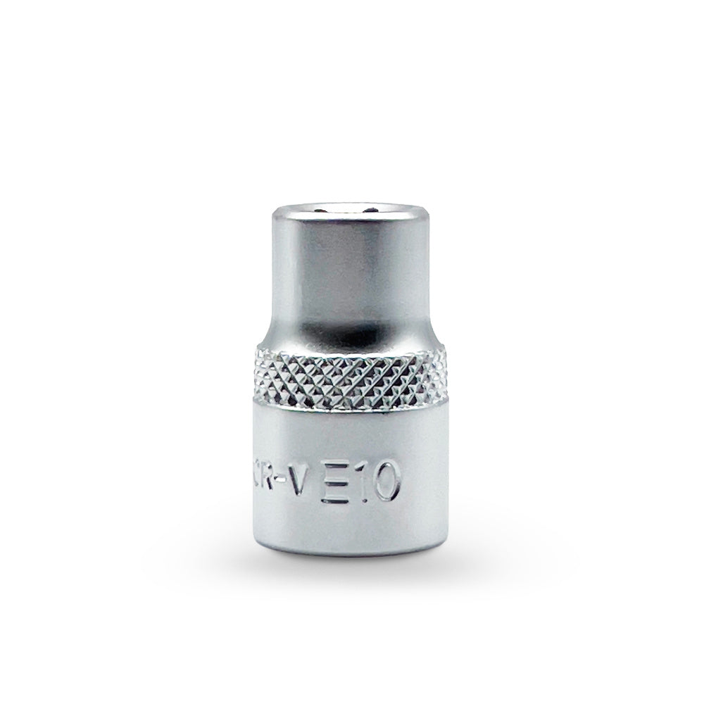 Heat treated, drop-forged Chrome Vanadium steel sockets with micro chrome finish for greater corrosion resistance. Double cross knurled ring to assist gripping with oily fingers. DIN standard with *AuzDrive technology.