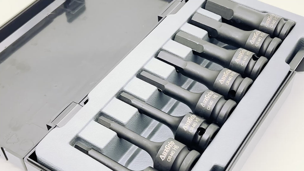 Chrome Molybdenum, drop-forged impact sockets are hardened and tempered for strength and with phosphate finish for greater corrosion resistance. Storage case included. Ideal for use with air impact wrenches.